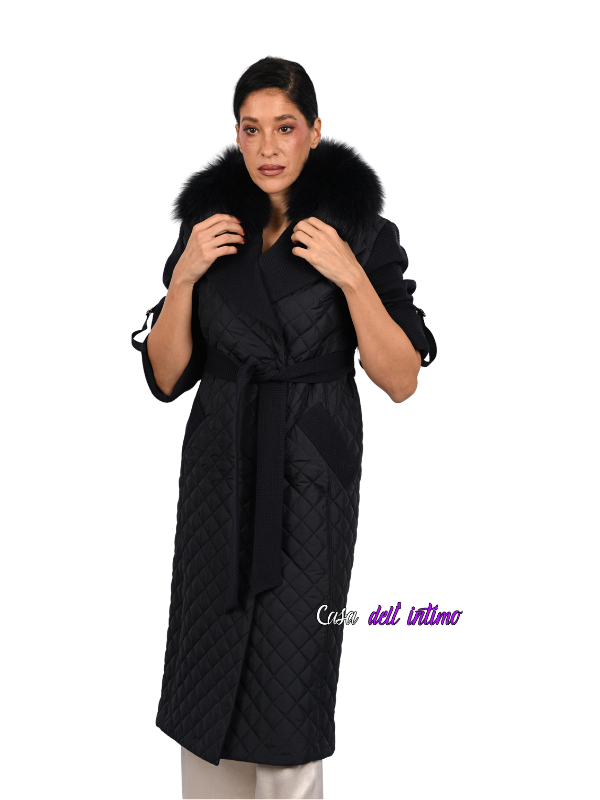 Elegantan i ženstven štepani kaput sa prirodnim krznom koje se skida.