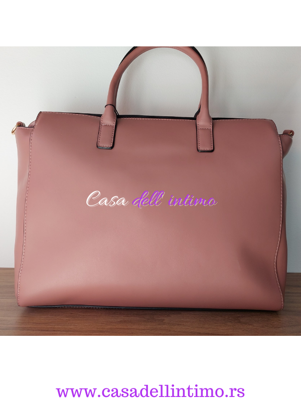 Veća kožna torba sa krznom, u nežno rozoj boji.