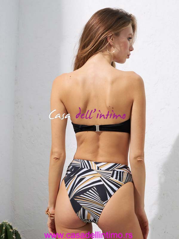 Dvodelni kupaći kostim sa dubokim gaćicama. Gornji deo kupaćeg kostima je penasta B korpa sa žicom. Bretele se skidaju.